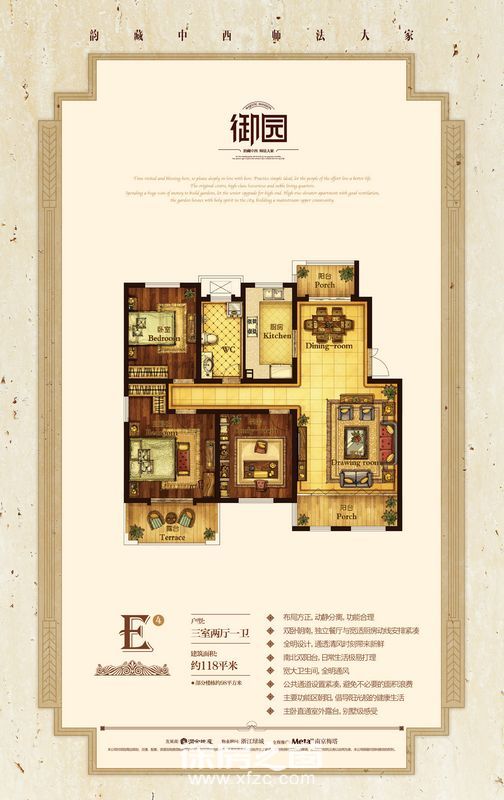 E4户型3室2厅1卫 118㎡