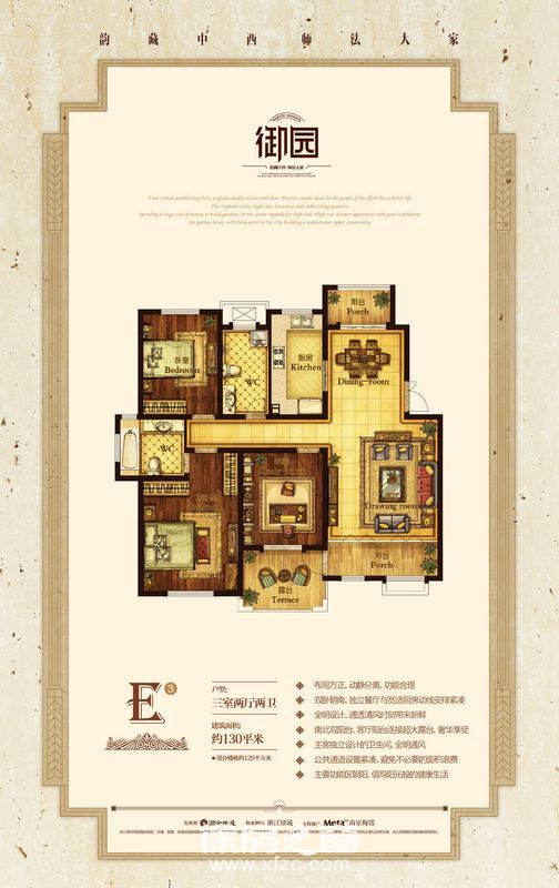 E3户型3室2厅2卫 130㎡