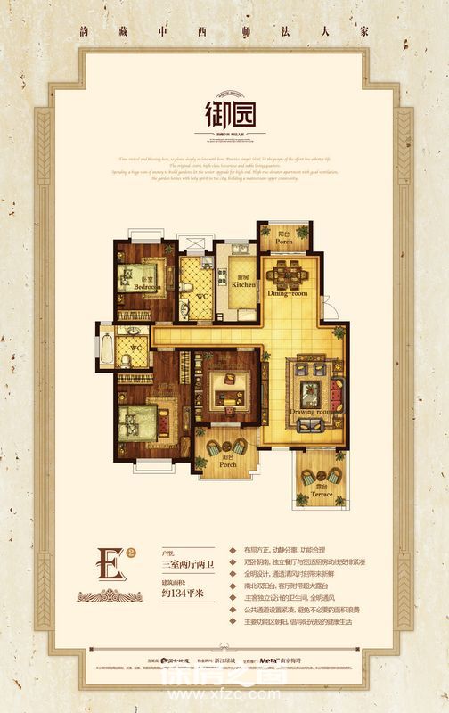 E2户型3室2厅2卫 134㎡