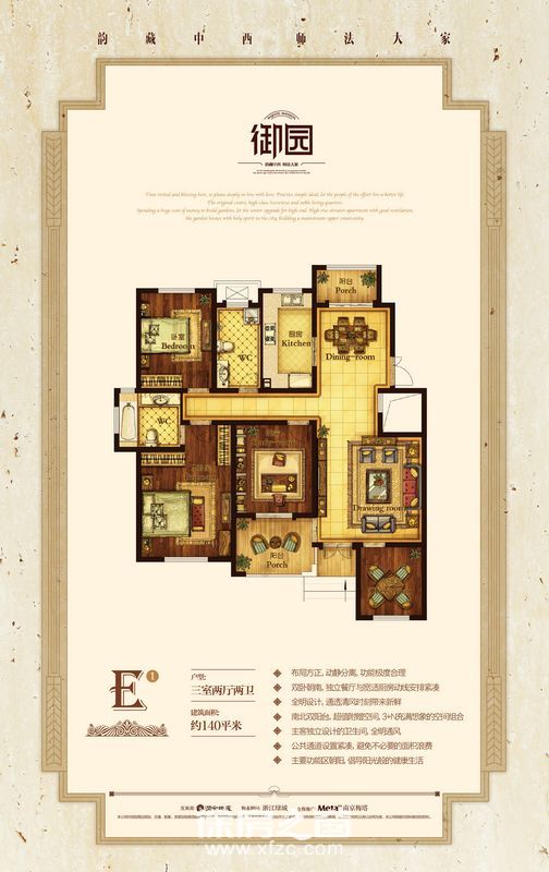 E1户型3室2厅2卫 140㎡