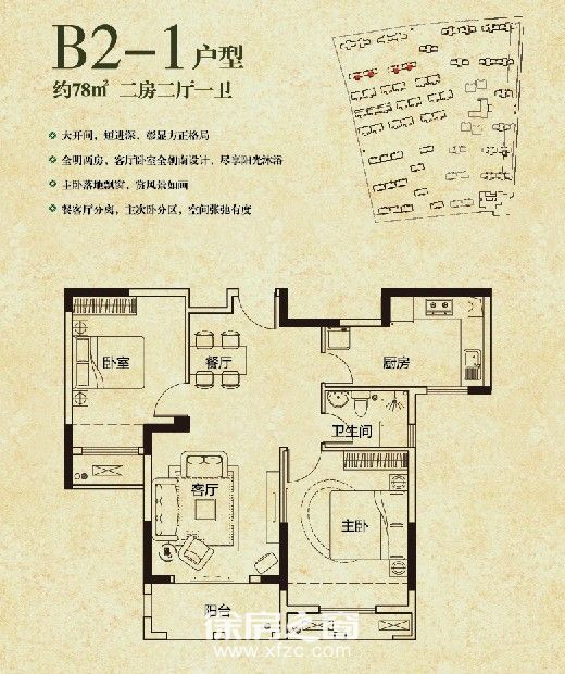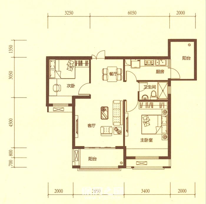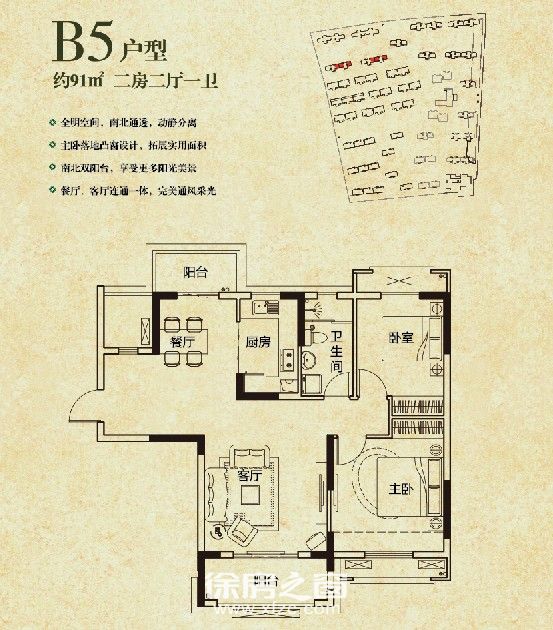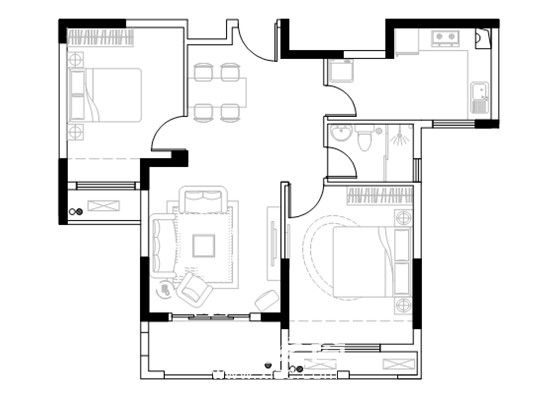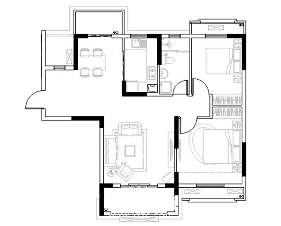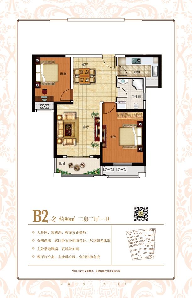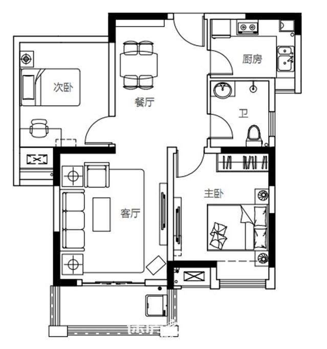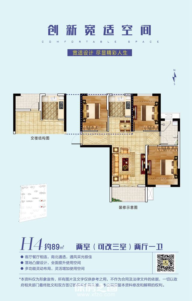 四期-H4户型 2室(可改3室)2厅1卫 89㎡