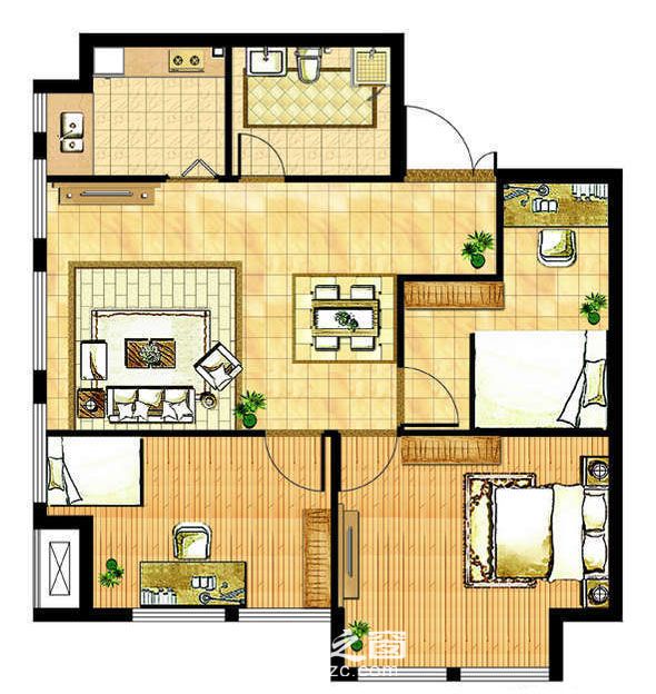 A1户型41平米 1室1厅1卫1厨 41㎡