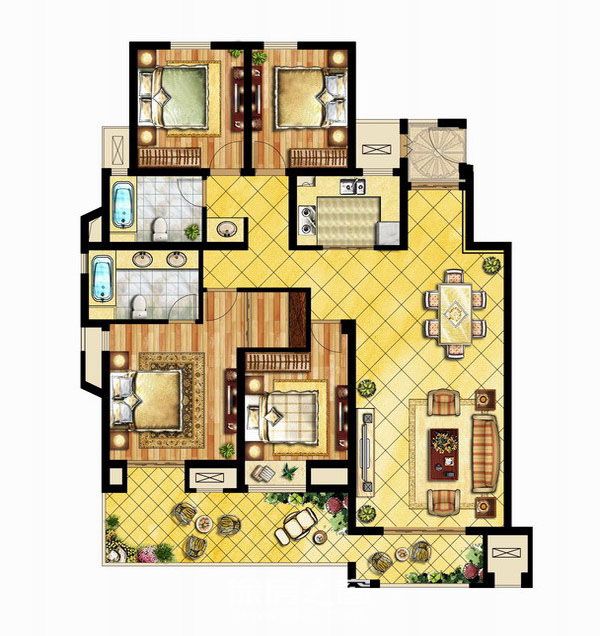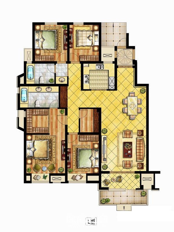 L户型 4室2厅2卫1厨 163㎡